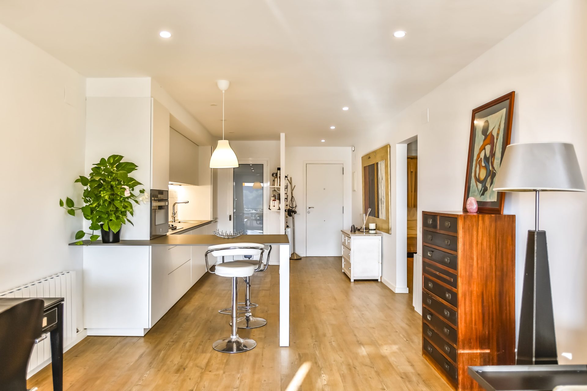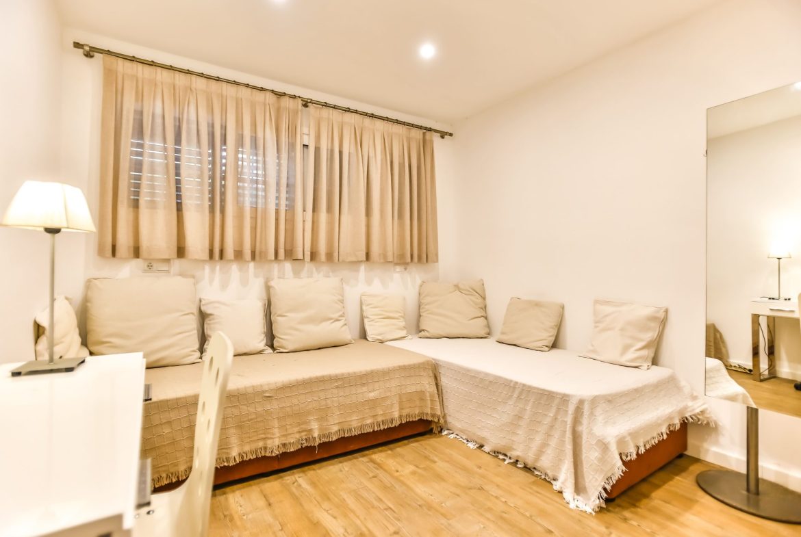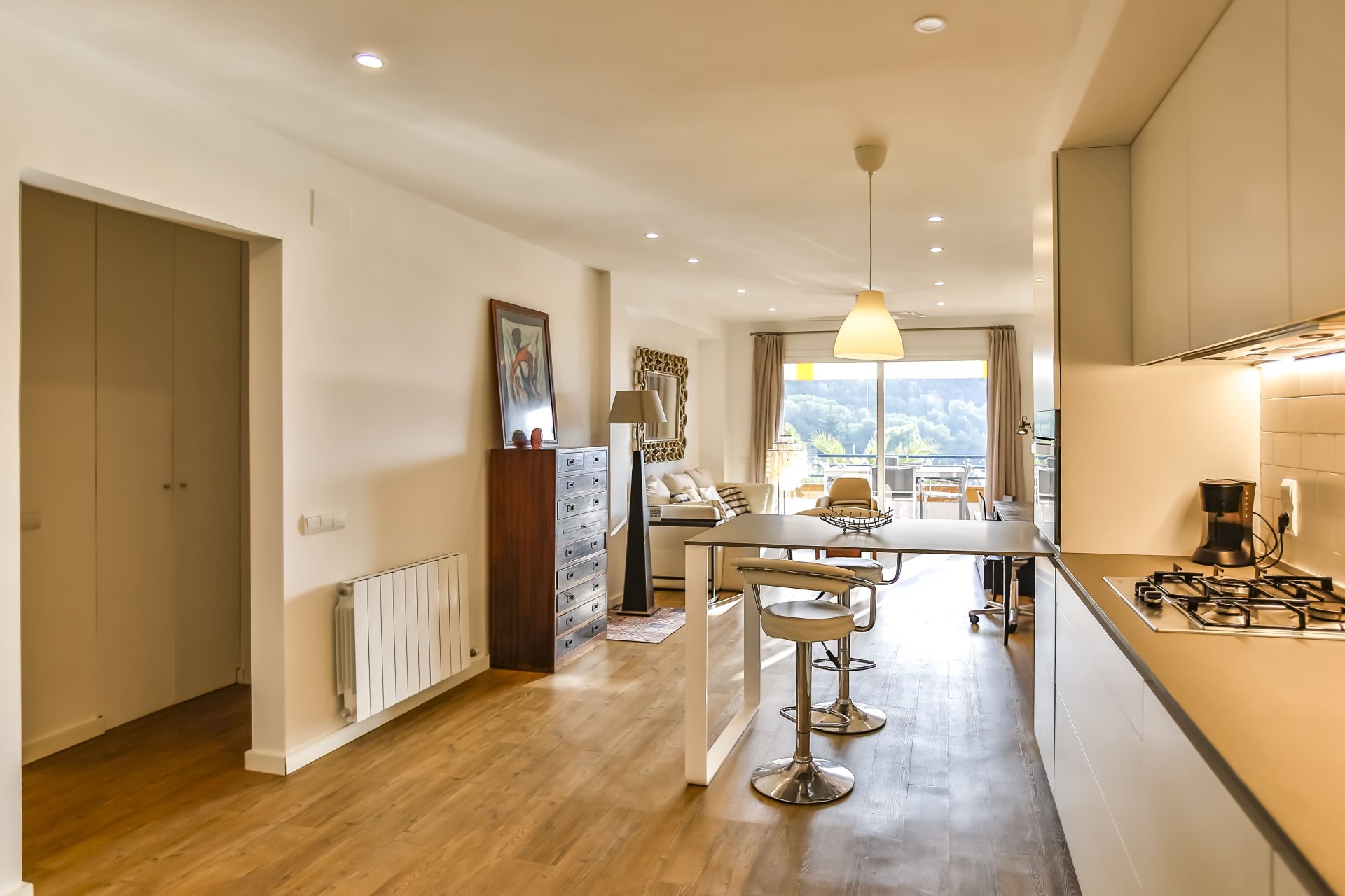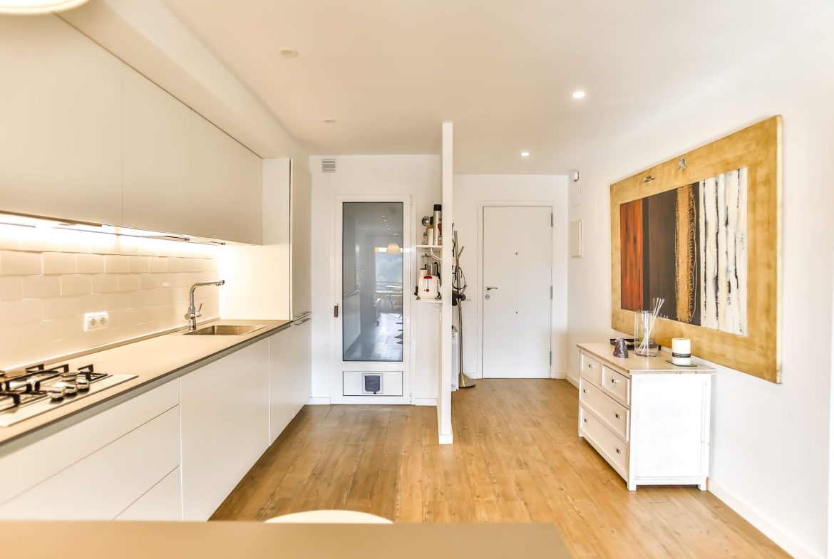 This flat with TOURIST LICENSE is characterized by light, sea views and large terrace of 15 m2.  It has been completely refurbished in 2018 with high quality materials. It consists of a large space shared by the kitchen and the living room, with beautiful sea views and direct access to the large terrace.  At the back is the laundry room with space for the boiler, pantry, washing machine and water softener.