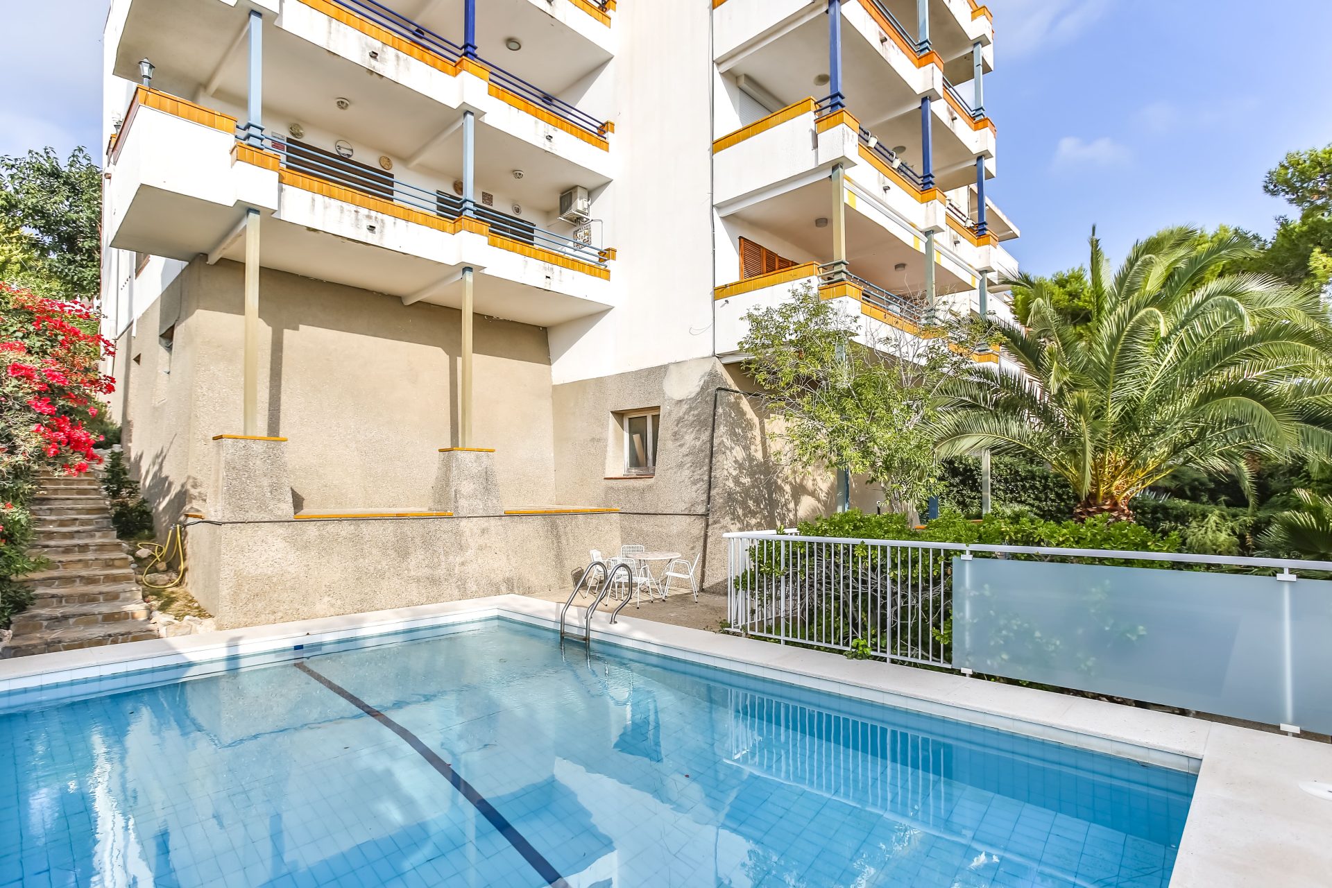 The community, composed by two buildings (10 neighbours in total) offers garden area and swimming pool.