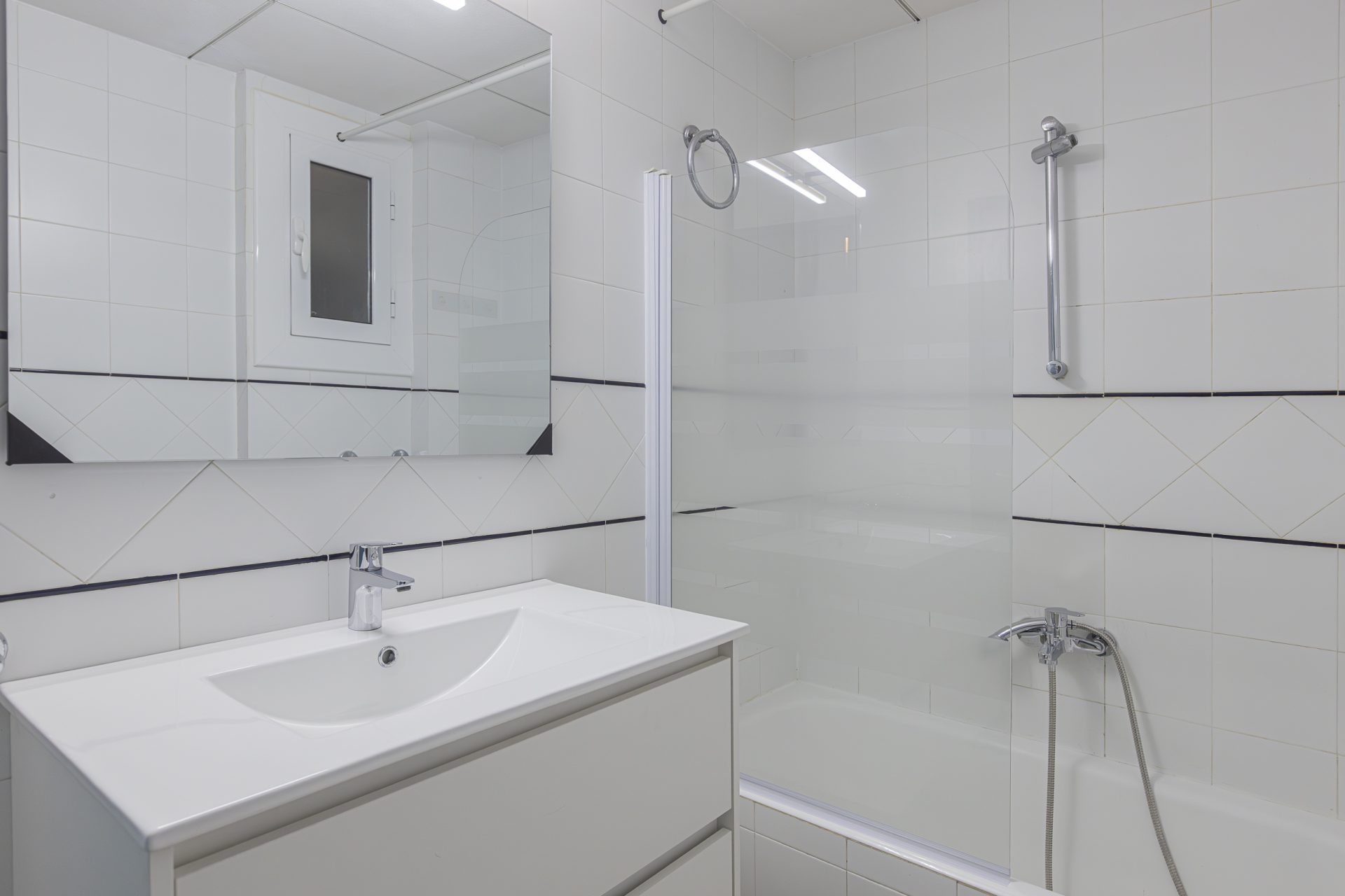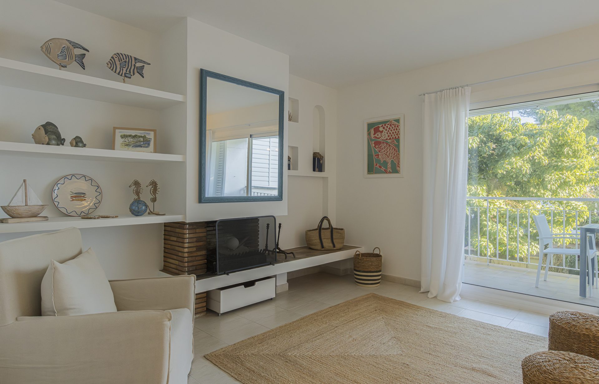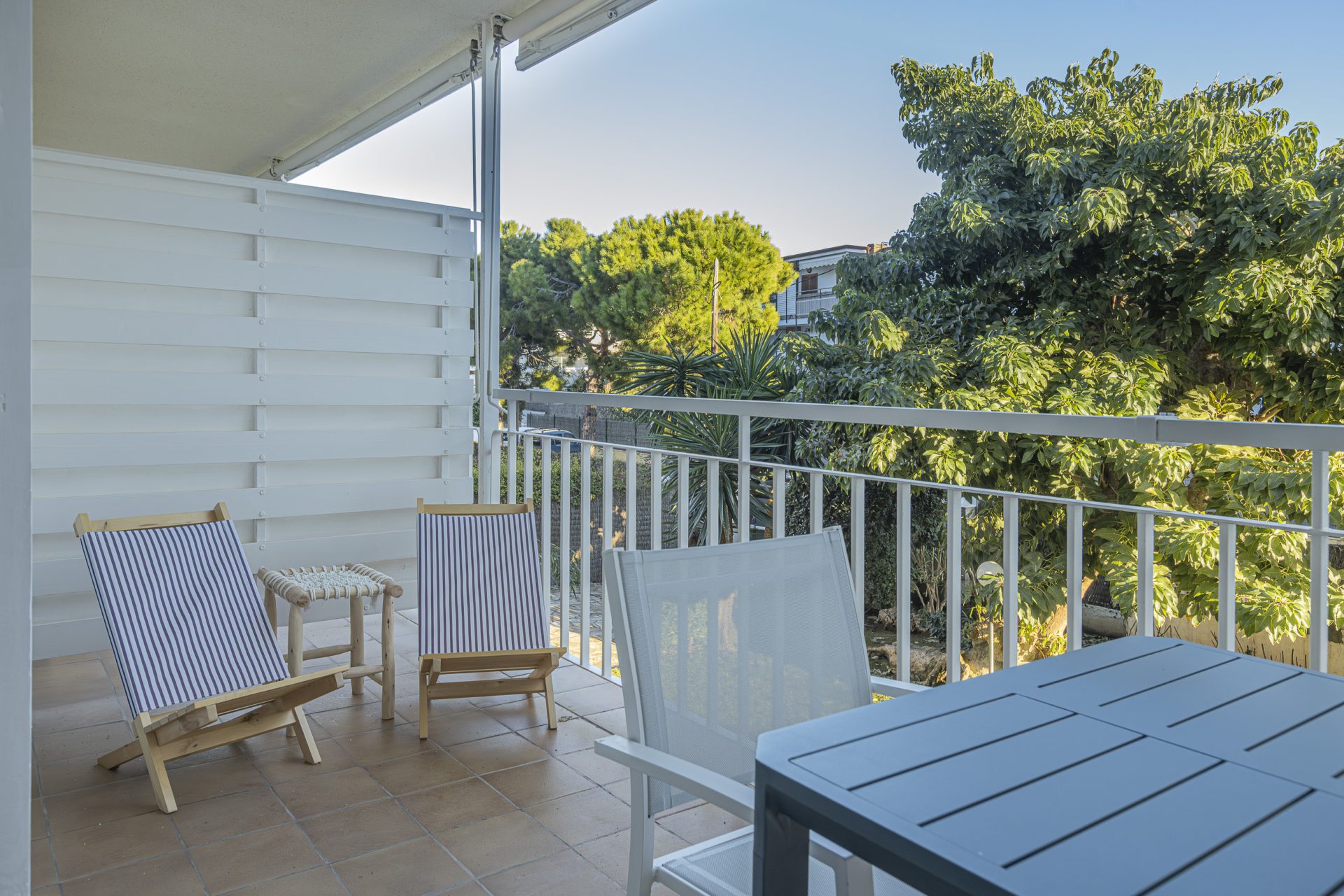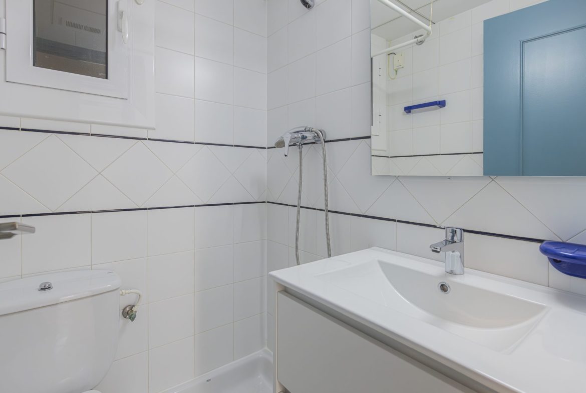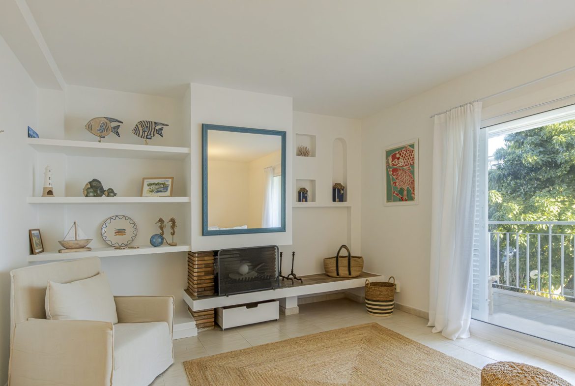 The flat, located on the first floor of the building, comprises a spacious living-dining room with unobstructed views and access to a terrace of approximately 12 m², ideal for enjoying the peaceful surroundings.