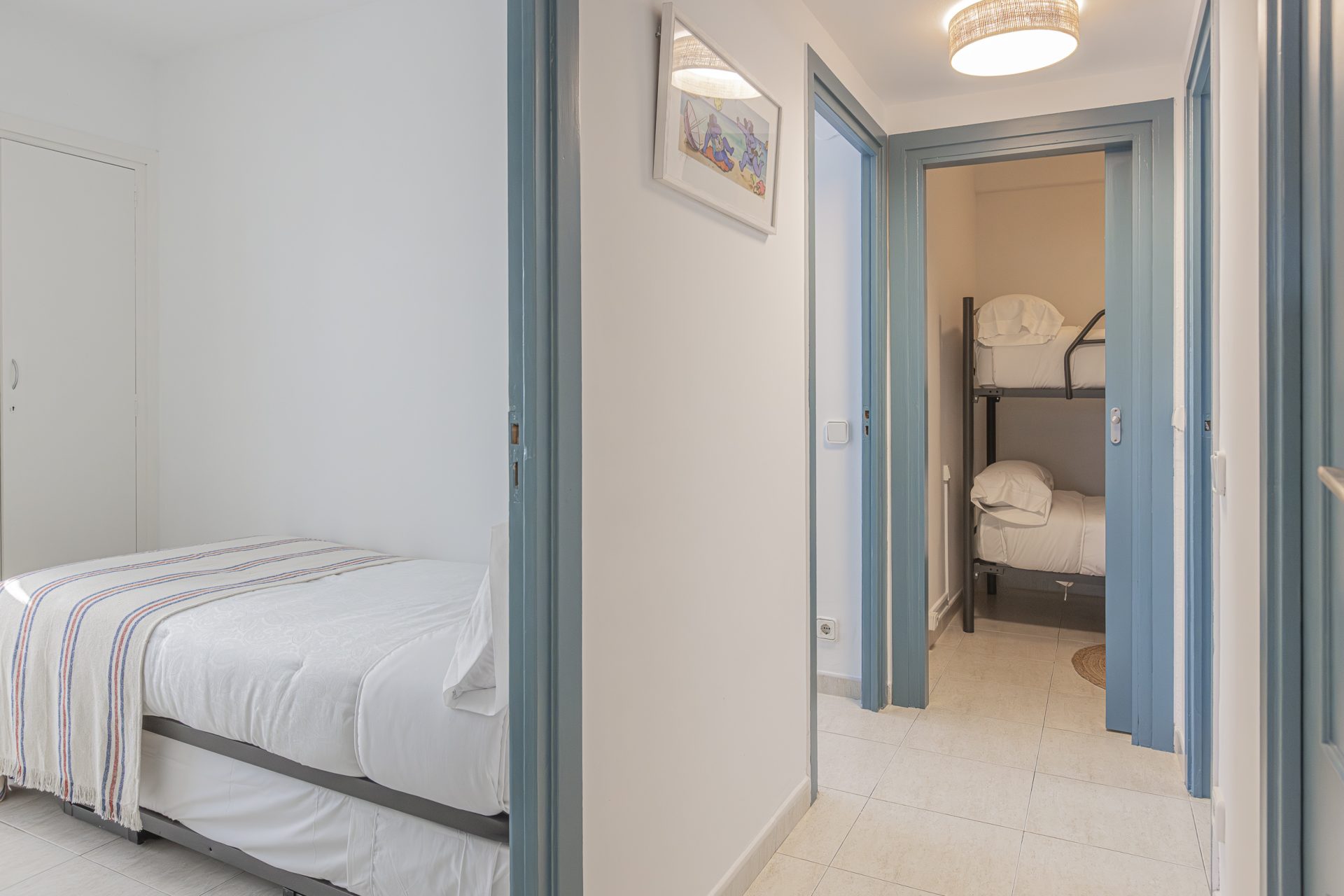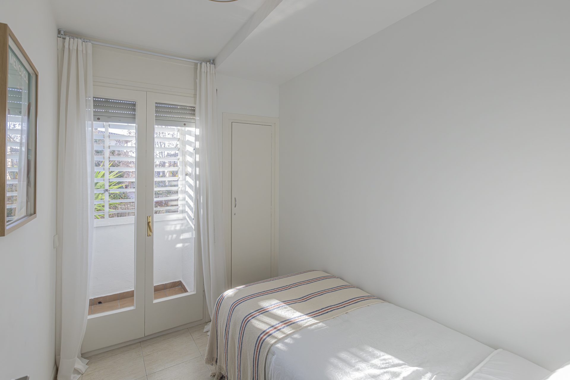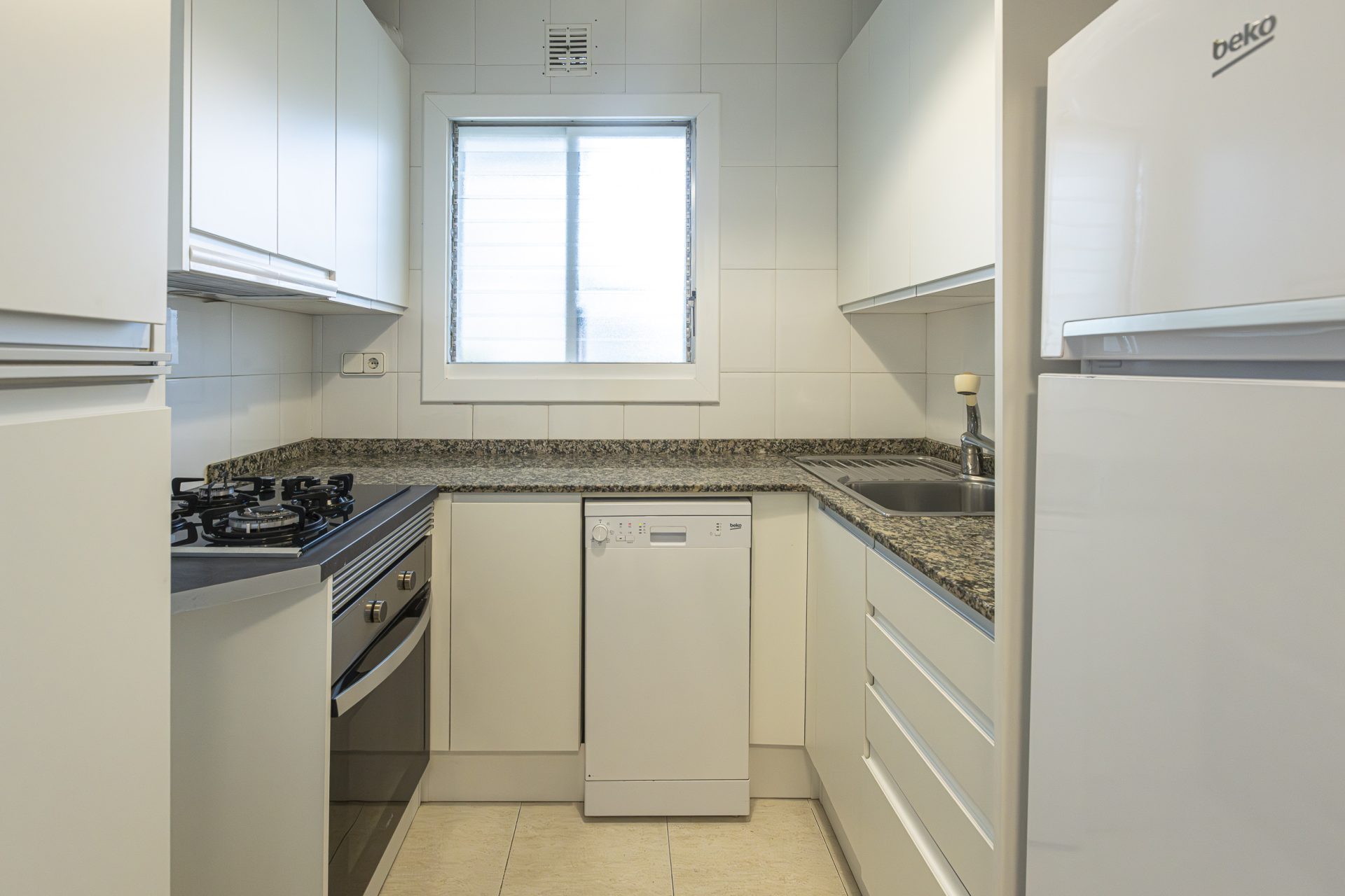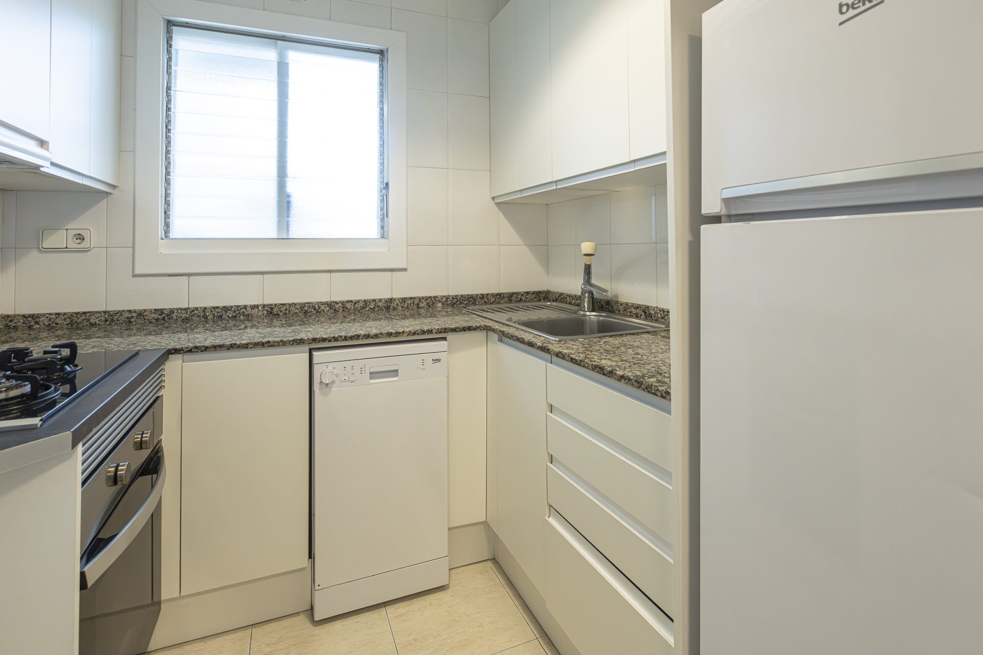 It has a separate kitchen, three bedrooms, one of which has access to a terrace, and two full bathrooms.