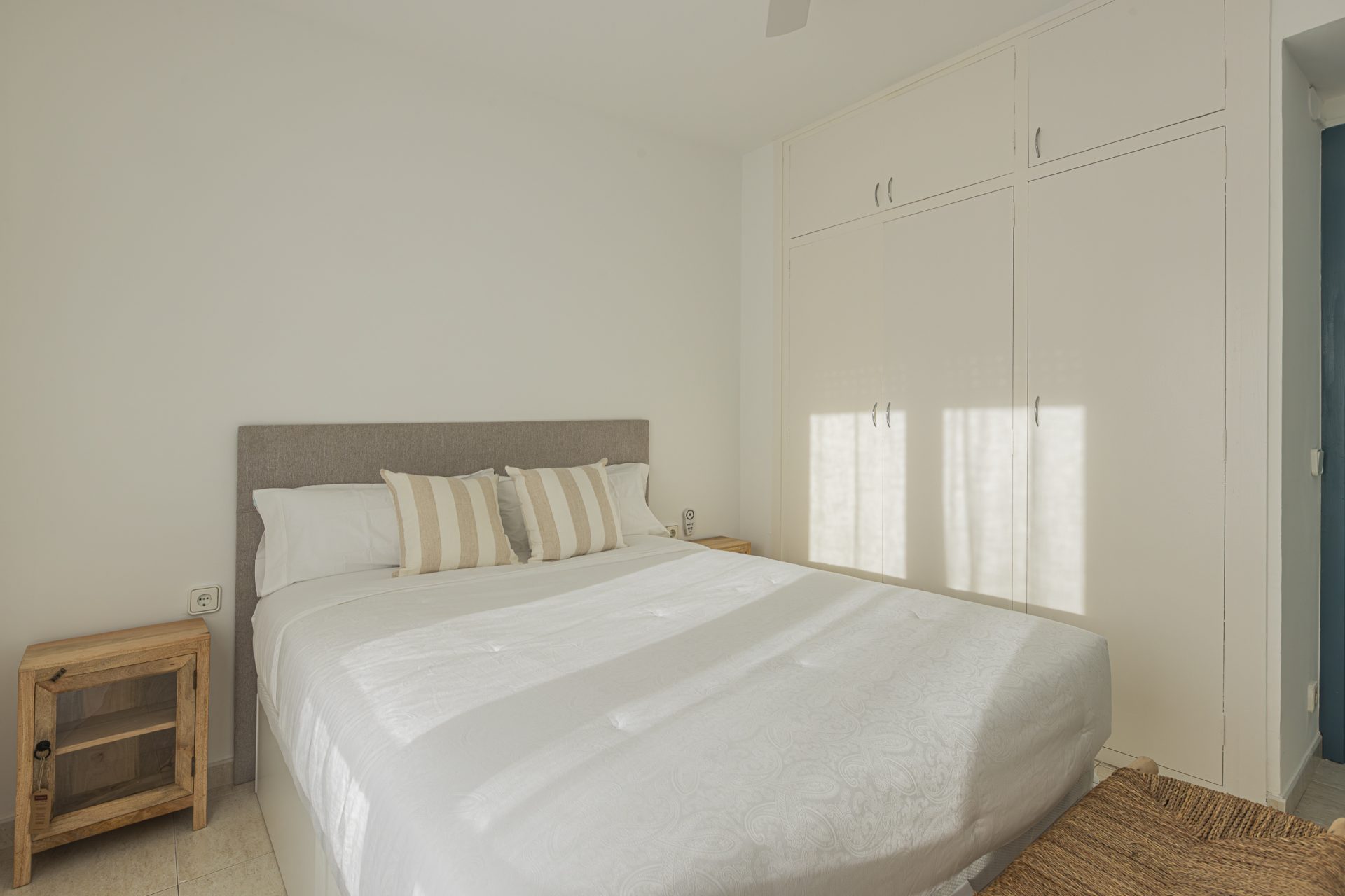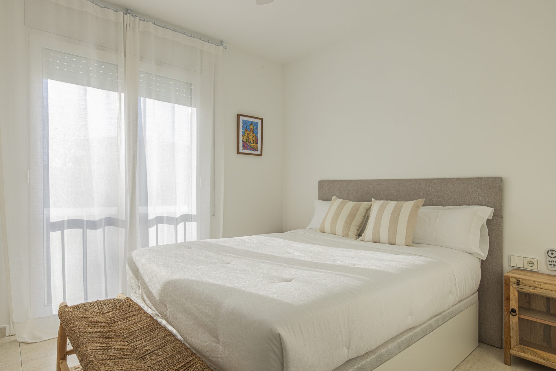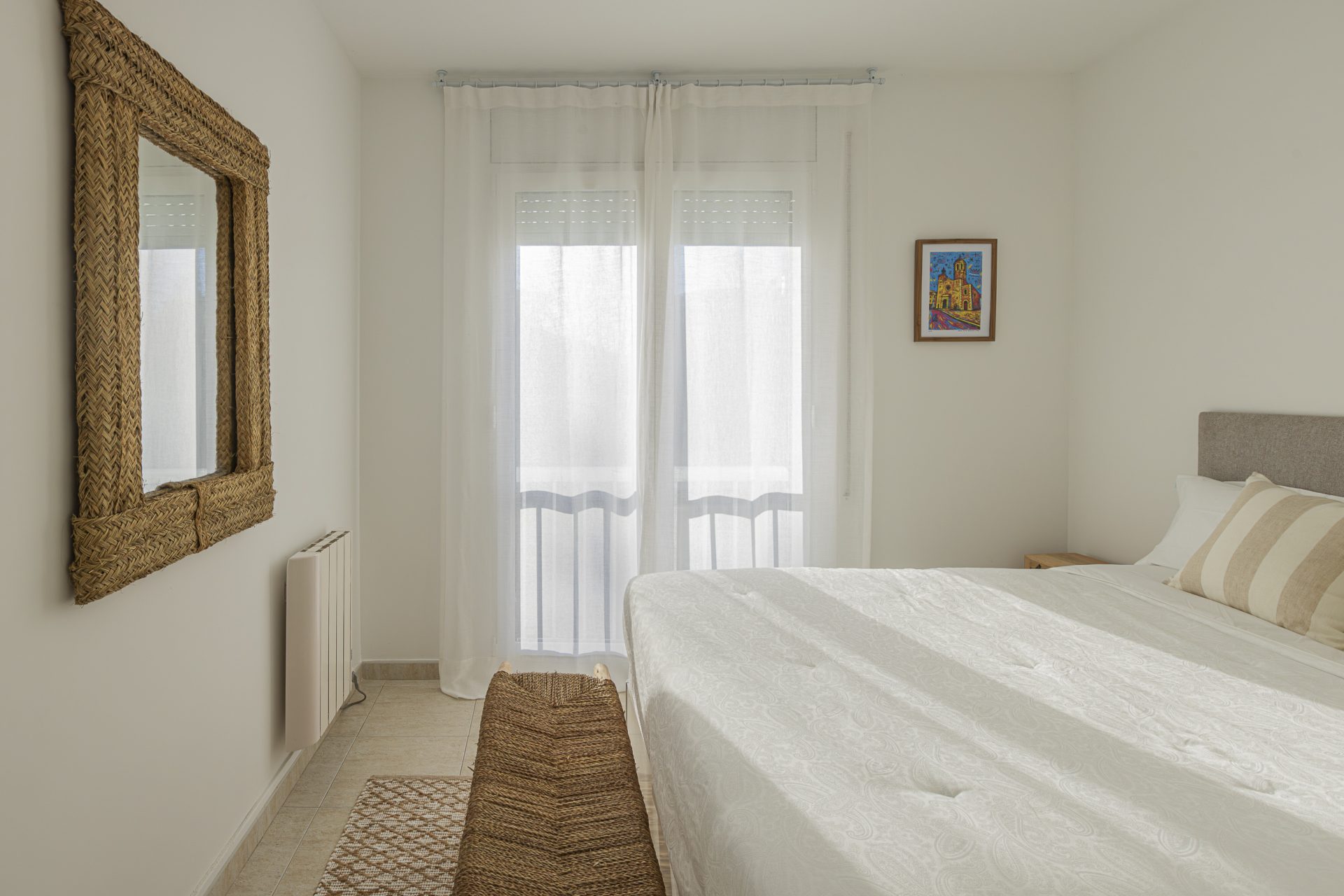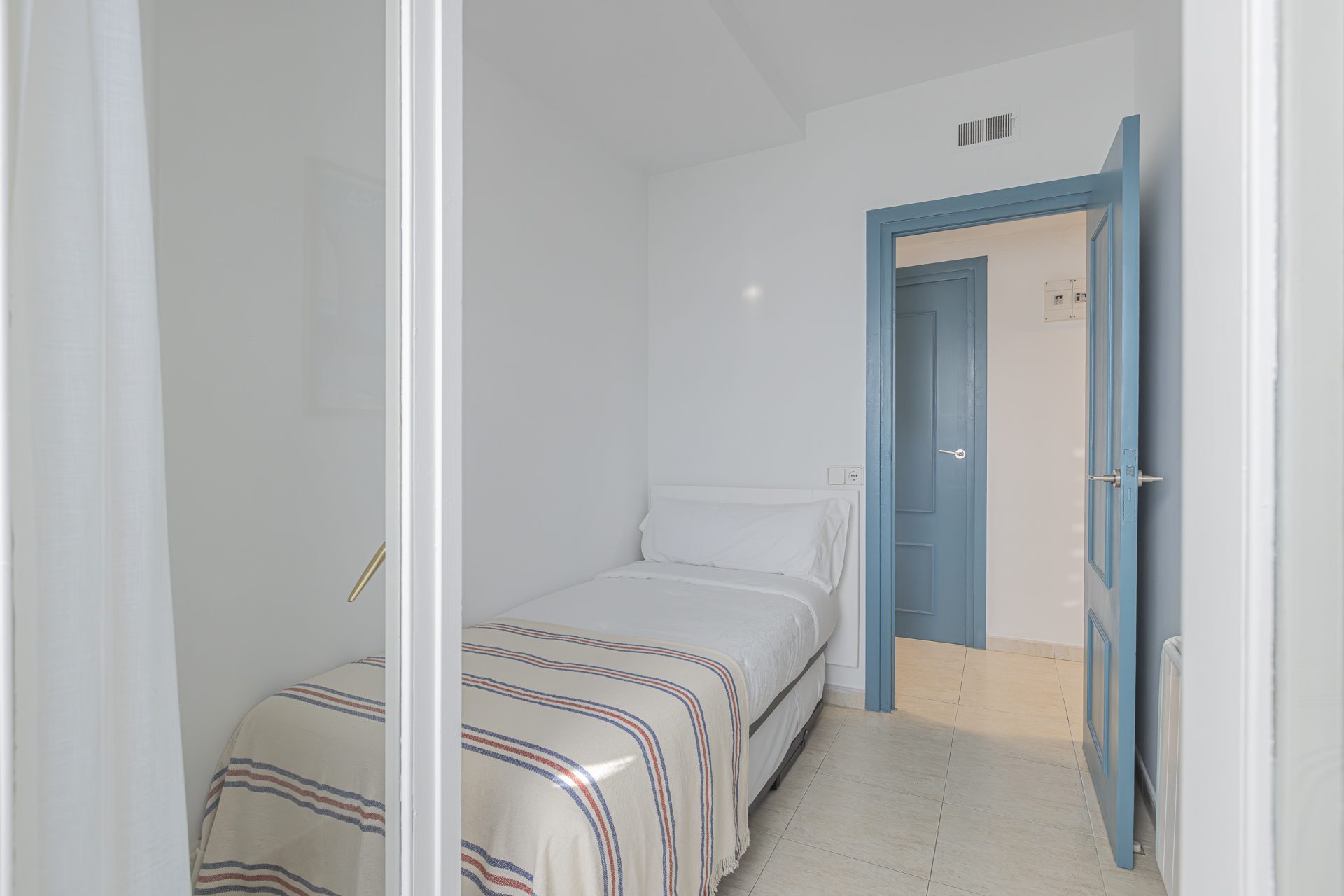 It has a separate kitchen, three bedrooms, one of which has access to a terrace, and two full bathrooms.