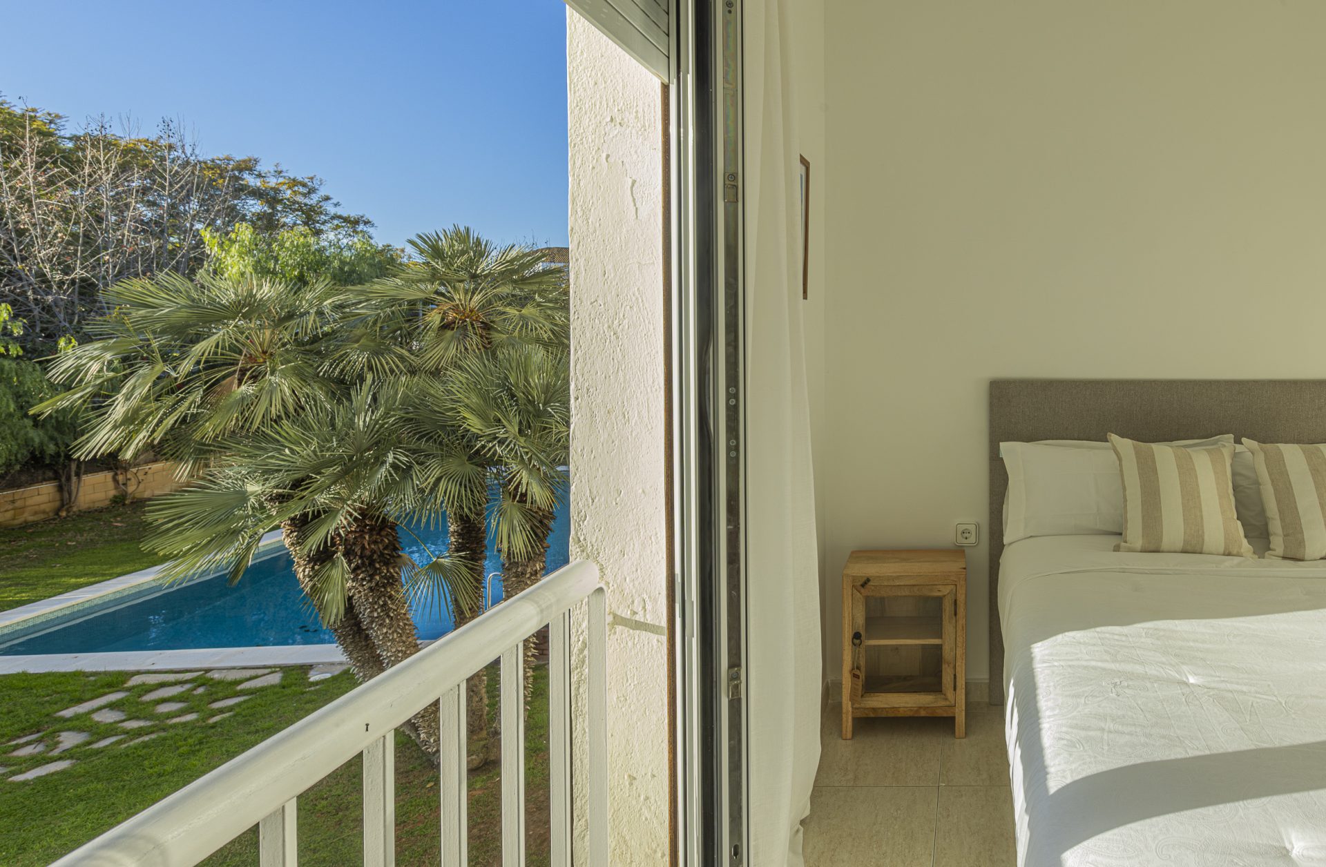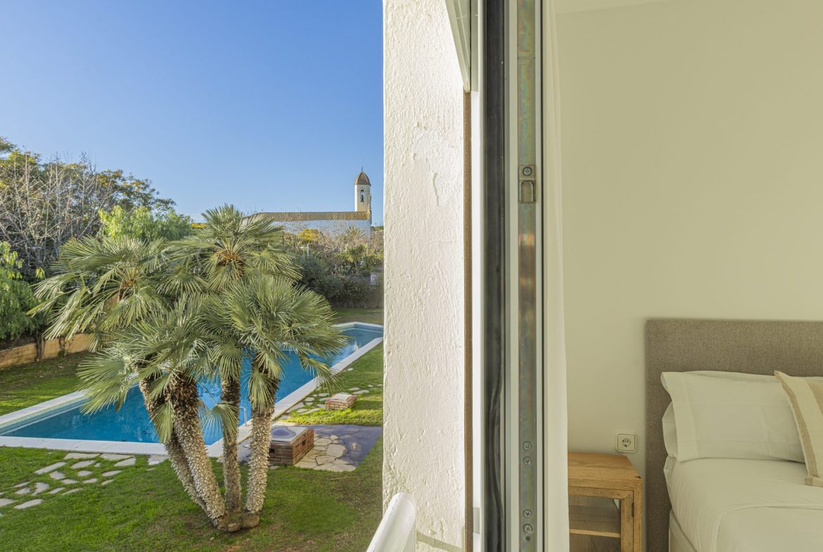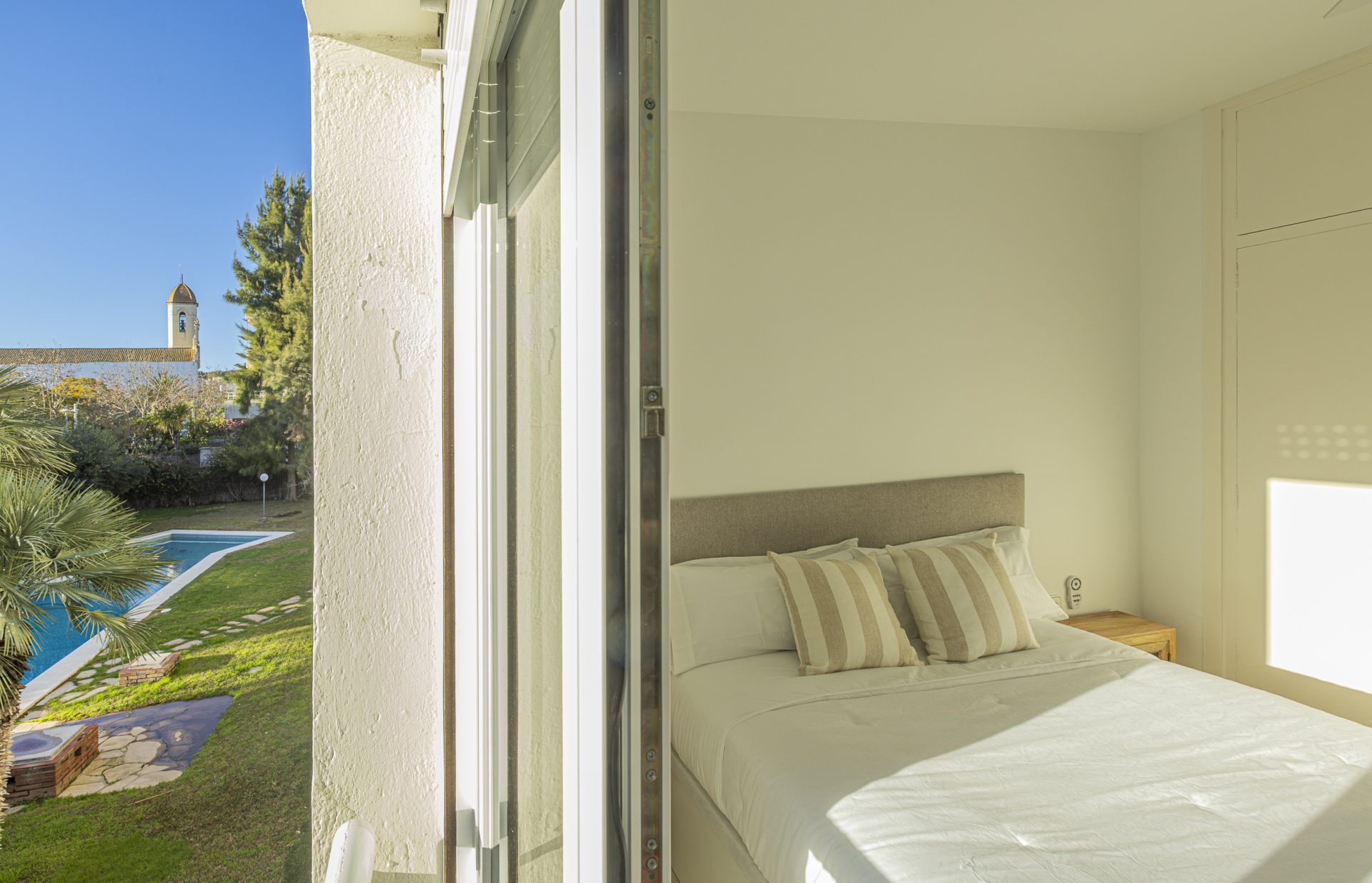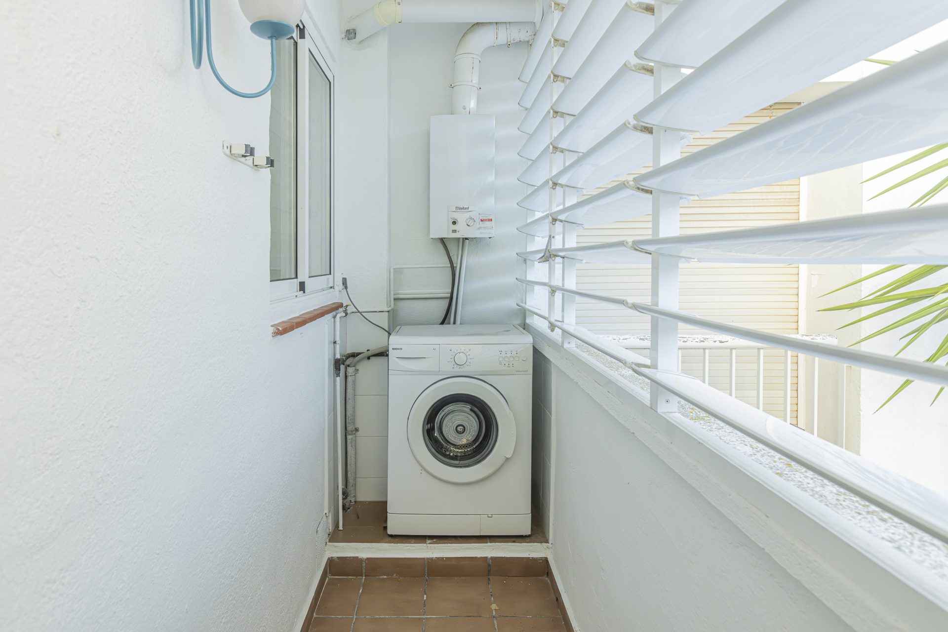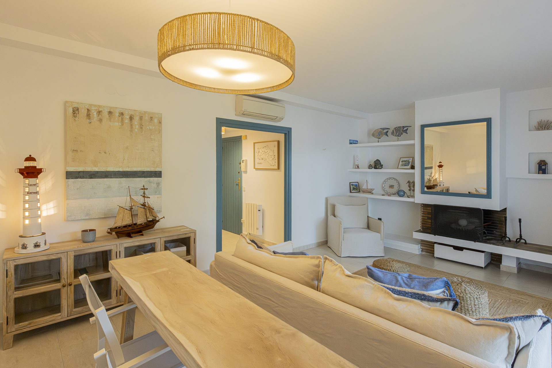 It has a separate kitchen, three bedrooms, one of which has access to a terrace, and two full bathrooms.