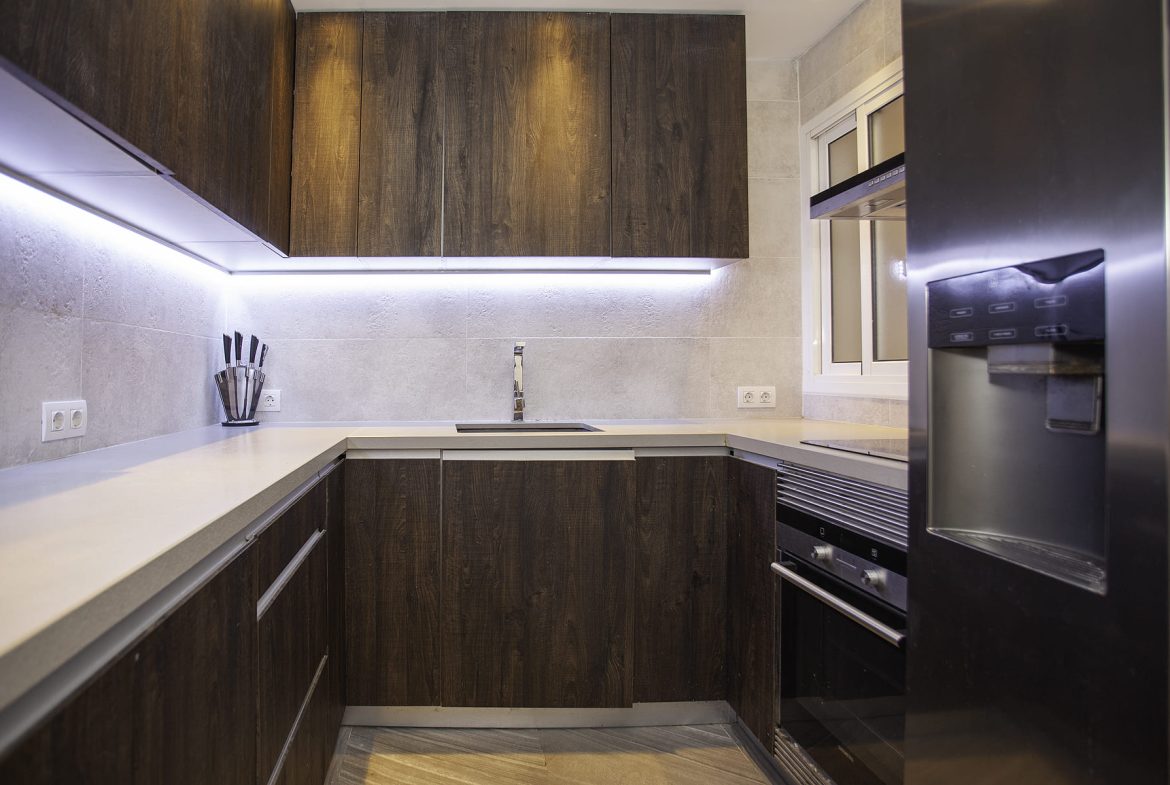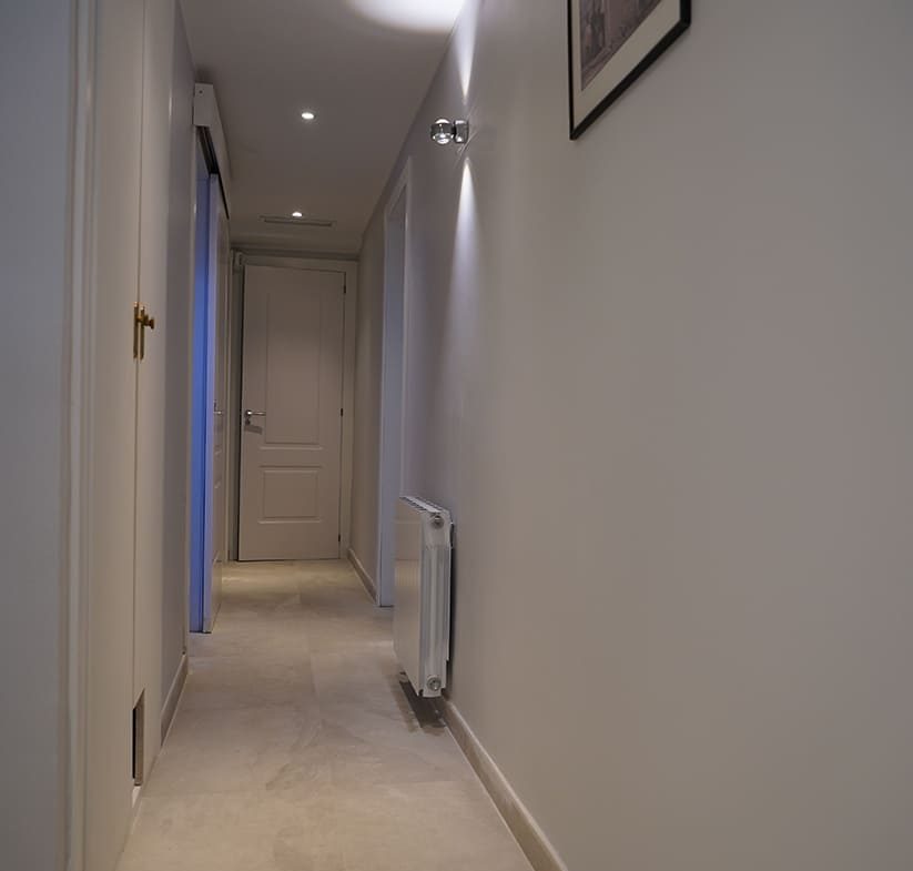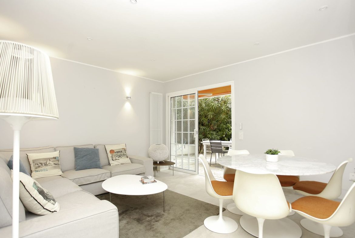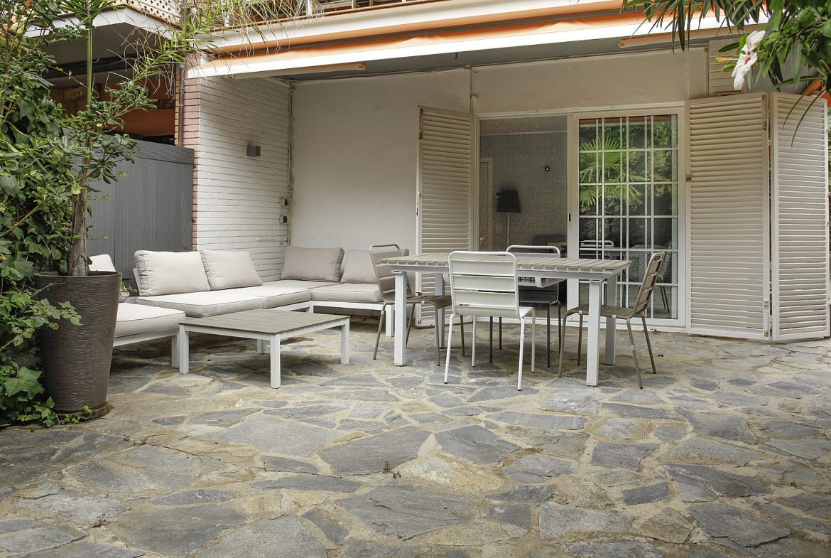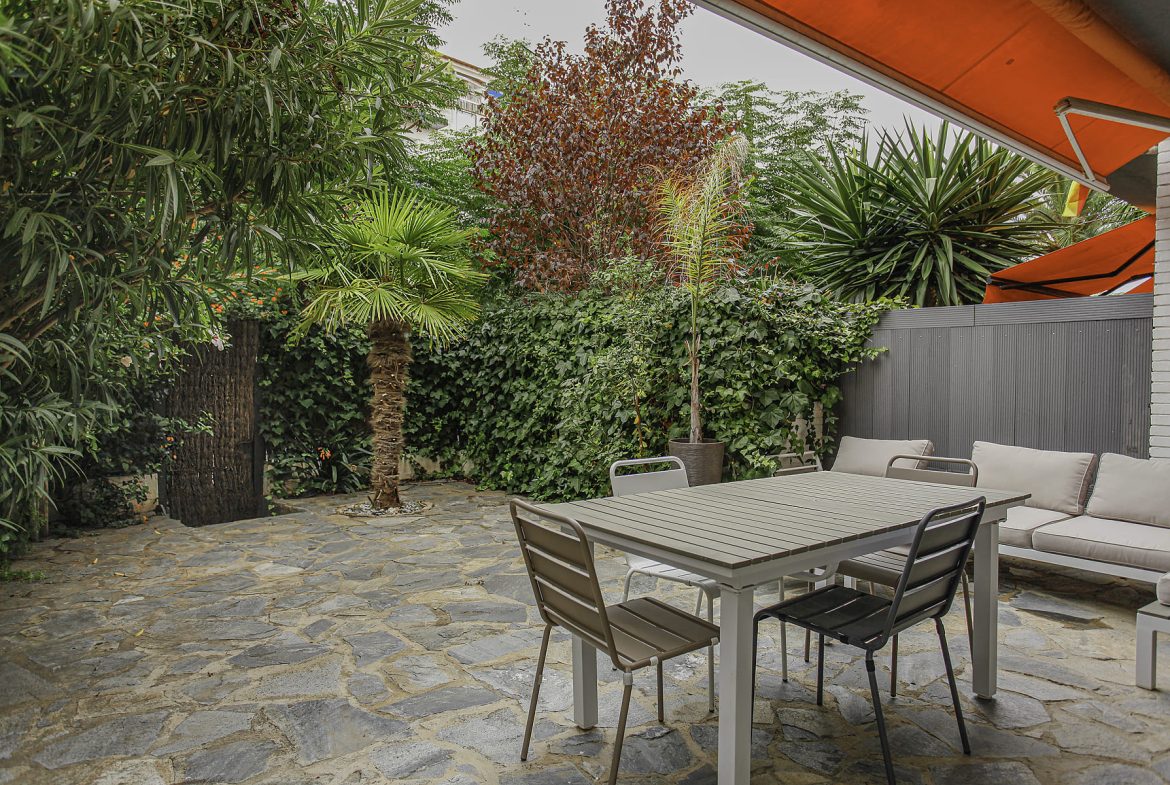 Desde dormitorio principal se accede también directamente al jardín privado que bordea todo el apartamento. El piso ha sido íntegramente reformado recientemente (suelos, ventanas, instalación eléctrica, cocina y baños) con materiales de alta calidad.