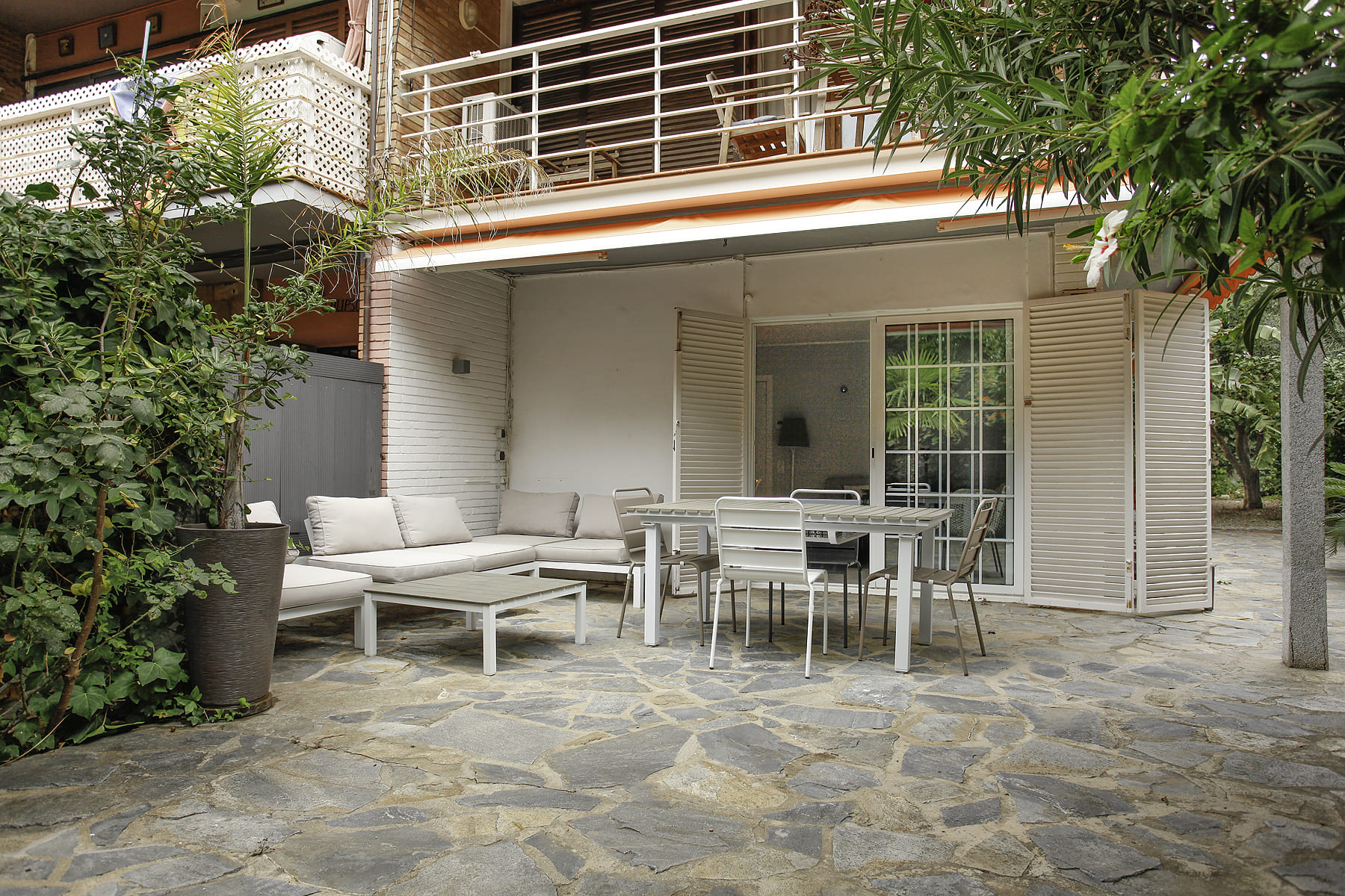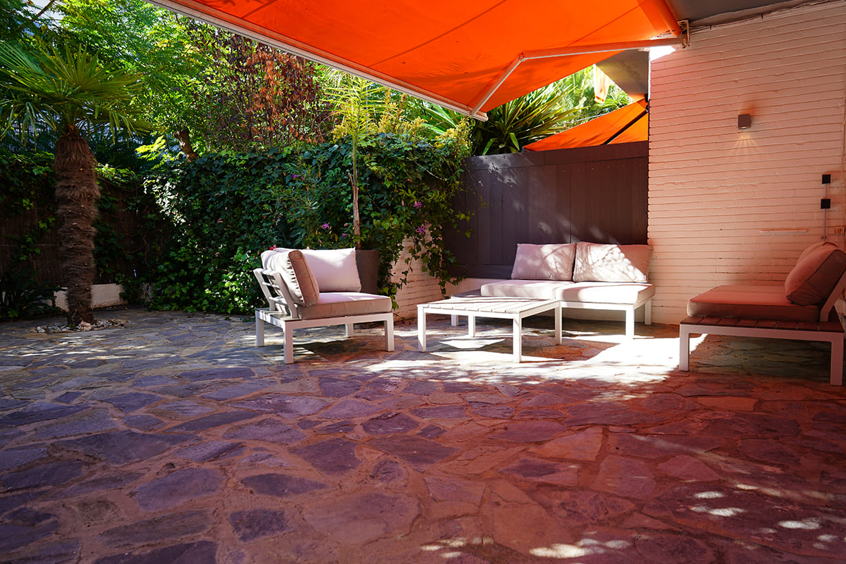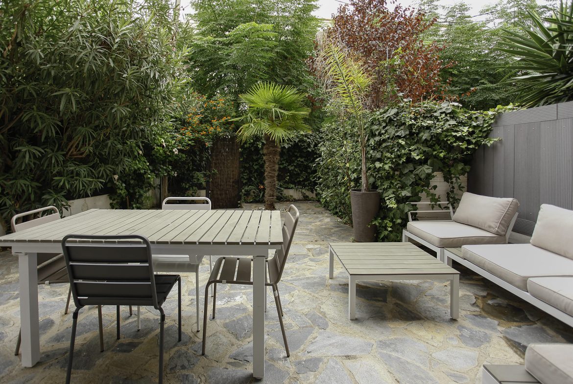 Al jardín privado de la propiedad podemos acceder directamente desde la calle o a través del portal del edificio.