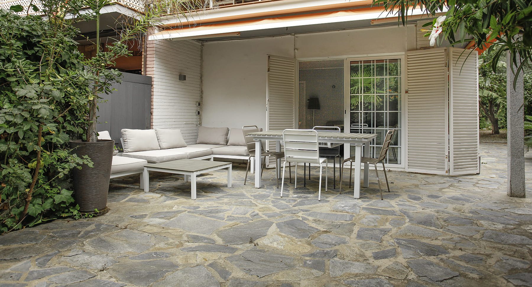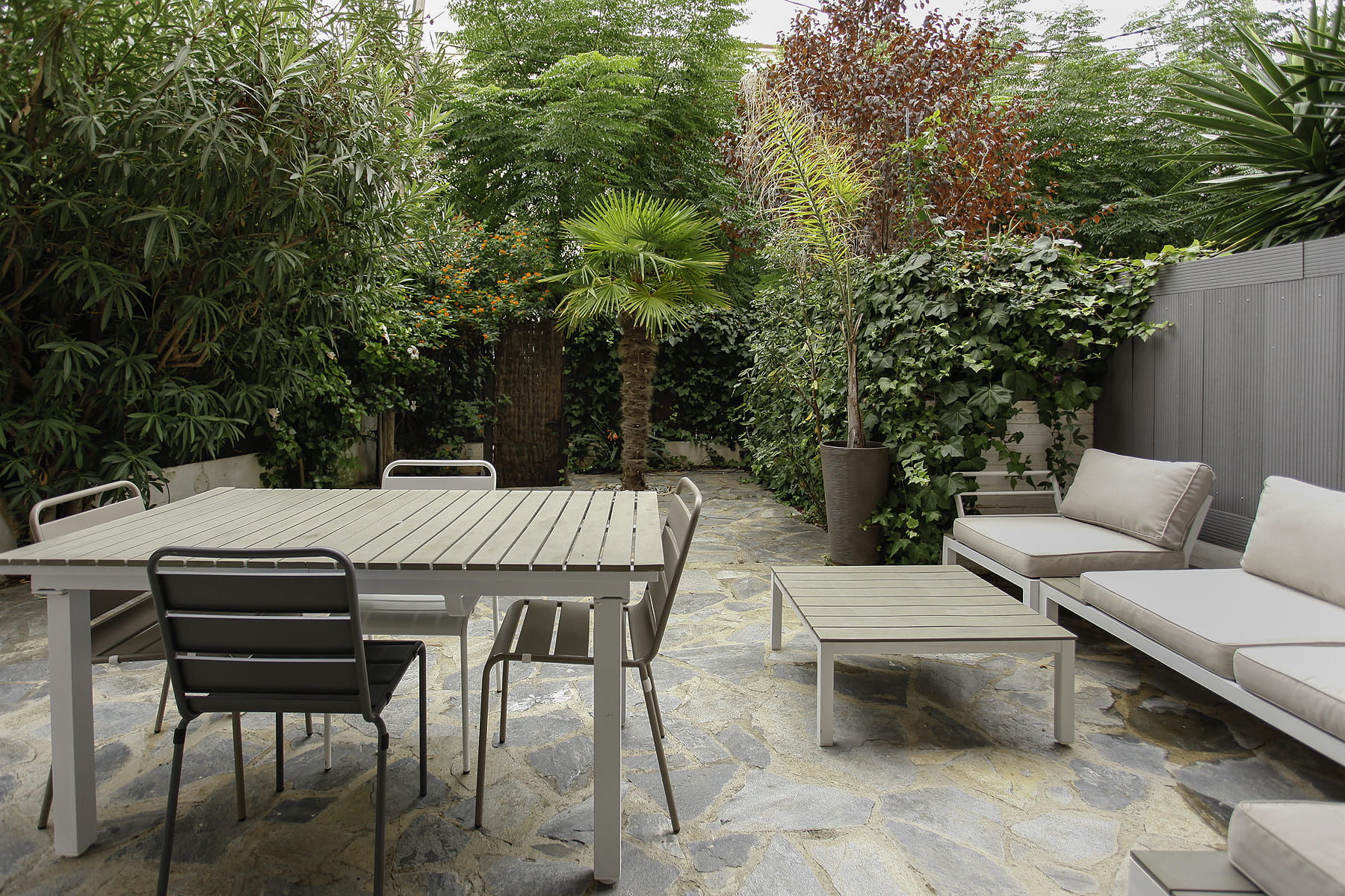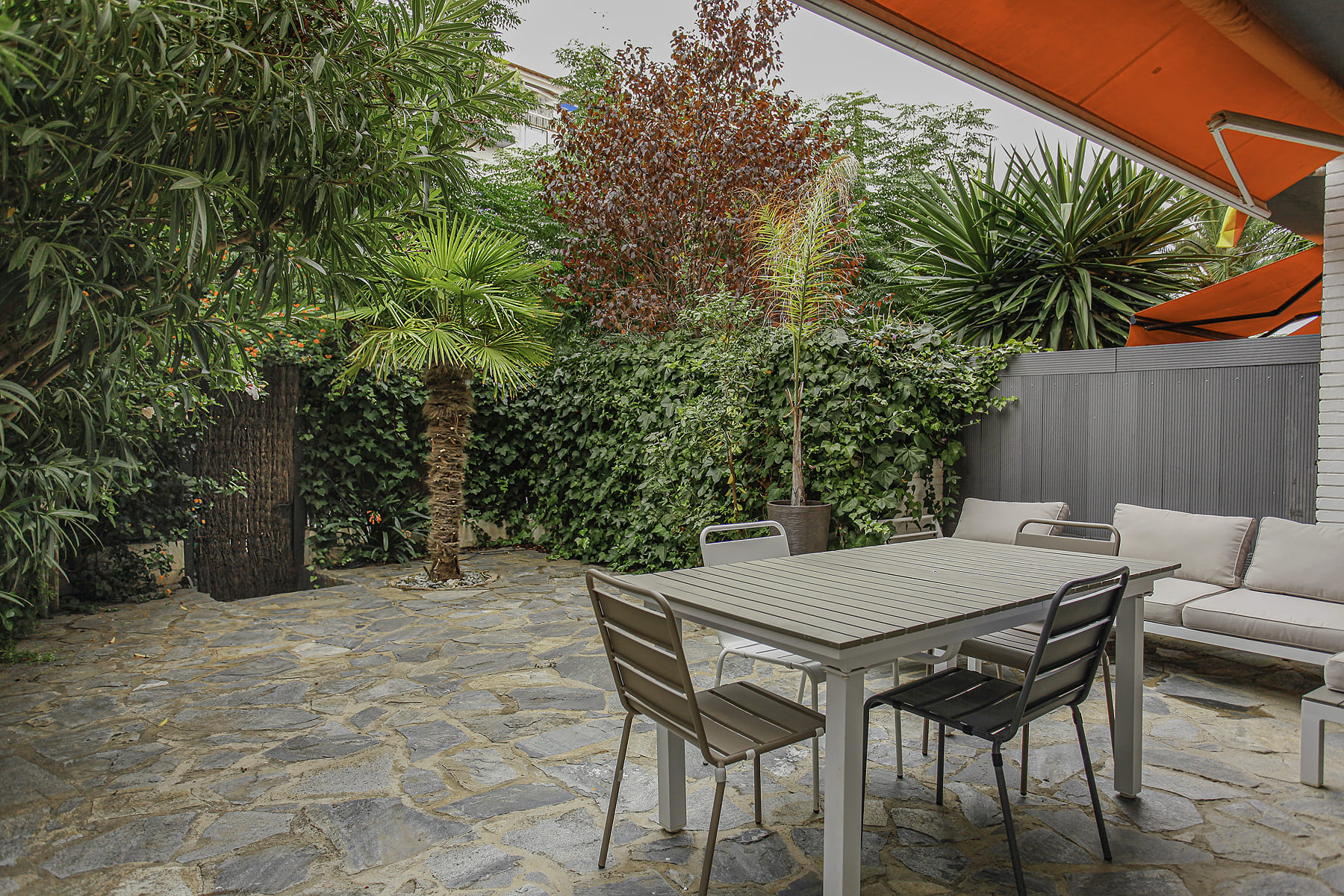 Al jardín privado de la propiedad podemos acceder directamente desde la calle o a través del portal del edificio.