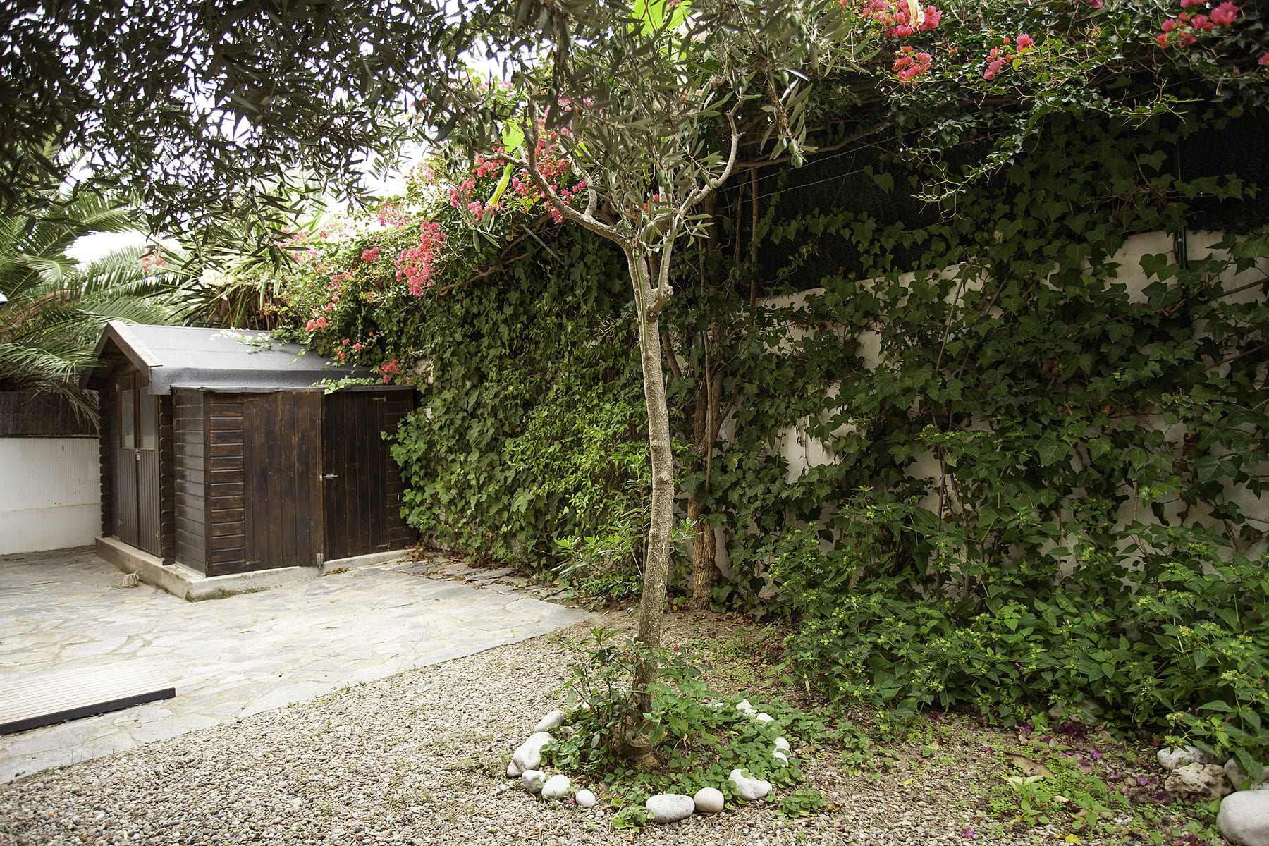 En el jardín se encuentra la el lavadero y la caseta de jardinería.